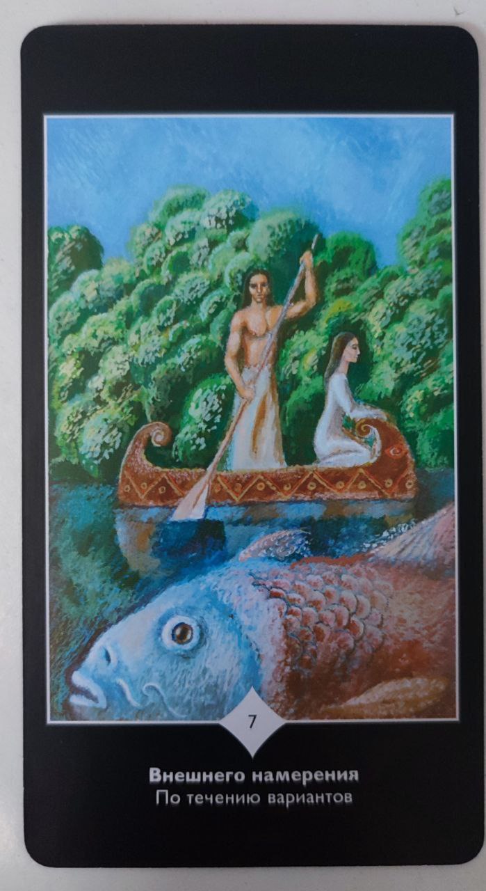 Карта советует отключить внутренний диалог, перестать “разговаривать” со своим внутренним цензором — разумом, и полностью довериться тем подсказкам, которые приходят откуда-то глубоко изнутри. Только такой подход выведет вас на верный путь.