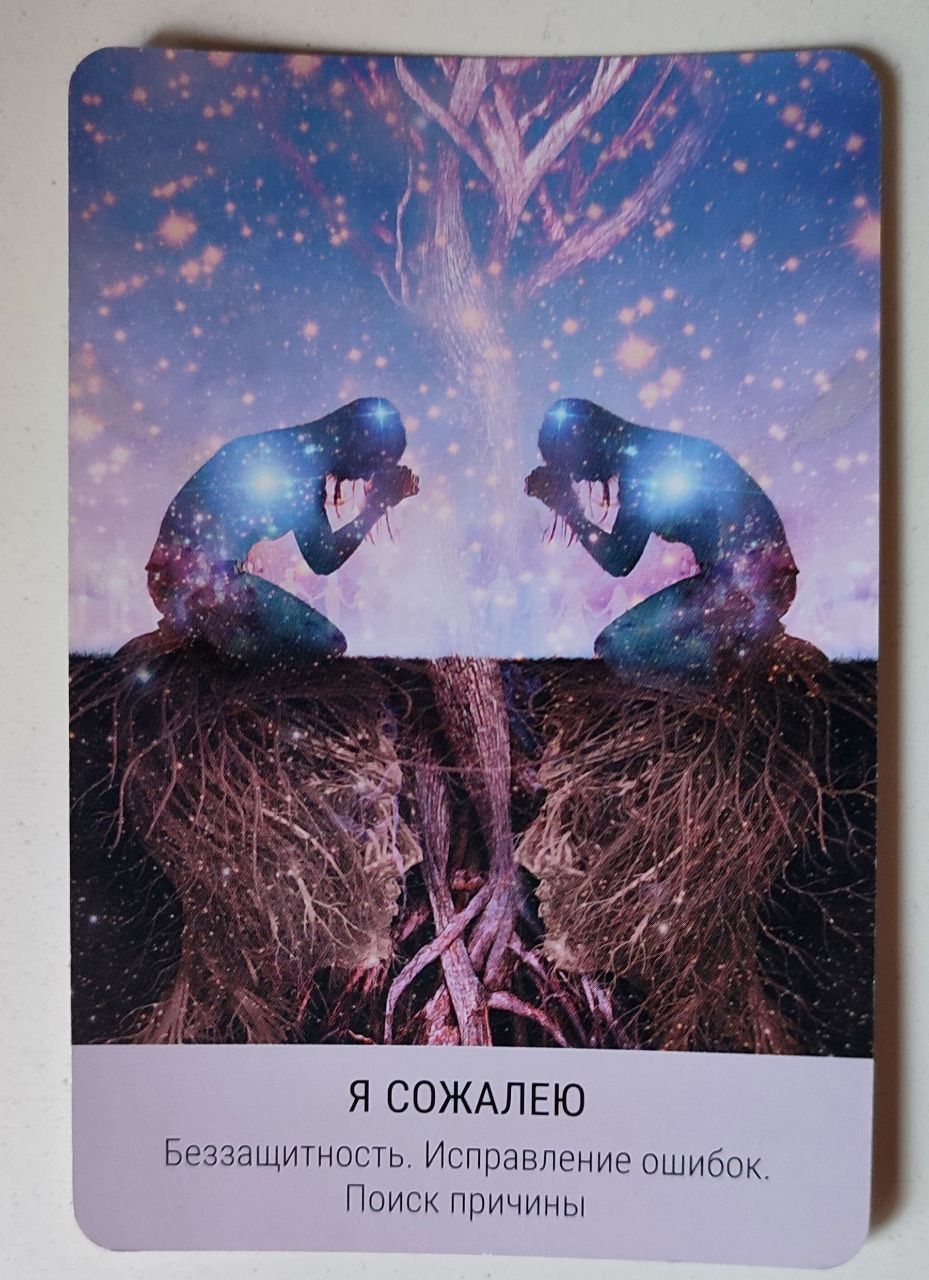 Мы живём во времена разногласий. Когда нам причиняют боль, мы расценивает это как личную обиду, а не как возможность роста. Если вы хотите найти покой и единство, мы не должны смотреть на окружающий мир как на источник опасности. Необходимо перестать мыслить такими категориями, Как "правильно" или "неправильно". Наши души помнят о единстве и стремятся к нему на Земле. Возможно, поэтому нам так больно, когда мы испытываем нечто противоположное. Но важно помнить, что мы не можем игнорировать реальность и притворяться, что единство, любовь и прощение всегда есть на Земле. Это одно из величайших испытаний и уроков для прохождения Души. Чтобы добиться единства, мы должны прежде всего понять причины раскола среди отдельных людей, в обществе, во всём мире. Подумать - откуда взялись ненависть, боль, злоба, страдание и печаль? Эта карта призывает задуматься над тем, как мы, наши предки и общество, в котором мы живём, могли причинить боль другим, осознанно или неосознанно. Она призывает сломать стены, которые мы возводим вокруг наших сердец, и посмотреть на то, чем Мир является на самом деле. Скажите "Я сожалею" от всего сердца. Будьте частью той силы, что исцеляет раны, а не той, что разжигает старый конфликт, доставшийся нам в наследство. Смысл не в том, чтобы найти виновных, а в том, чтобы понять причины.