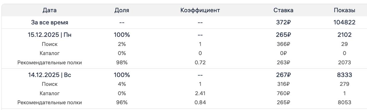например на днях у меня работала только 1 рк на товар в формате АРК (единая ставка) и как будто было бы все ок, появилась гипотеза, а что если поднять позиции, замерив при этом СТР и стоимость клика, друг будет пропорциональный рост, тогда получится быстрее разогнать позиции