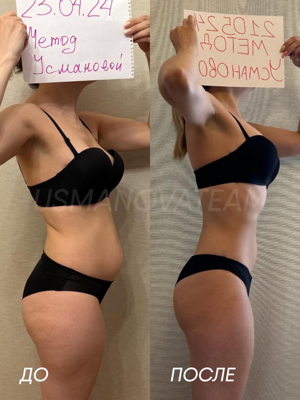 👉 Мой коллаж до/после, когда я начала делать дыхательную гимнастику с тренером.