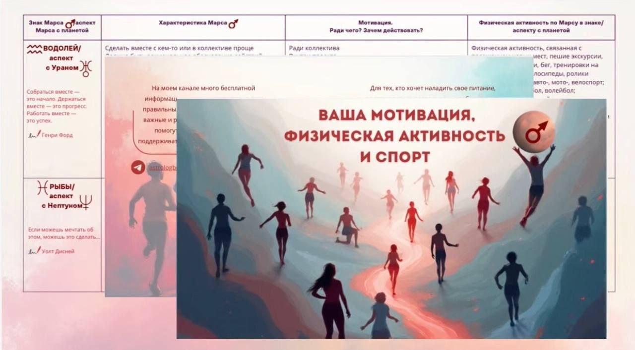 🔖 Я, практикующий астролог-психолог Юлия Бельская, собрала для вас индивидуальные и самые важные рекомендации к ДЕЙСТВИЯМ в радость, без уговоров в астро-шпаргалке «Ваша мотивация, физическая активность и спорт».