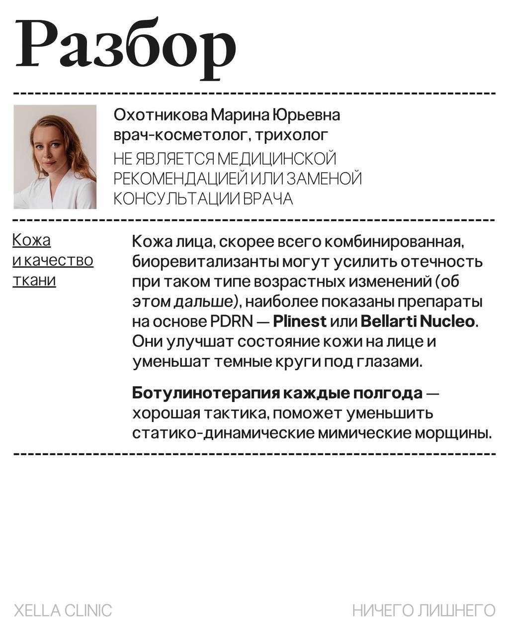 — Профессиональный взгляд: в рубрике #ничеголишнего мы будем разбирать ваши запросы. Наша цель — не составить список из 10 процедур, а дать обоснованное медицинское решение: что действительно необходимо, а от чего стоит отказаться.