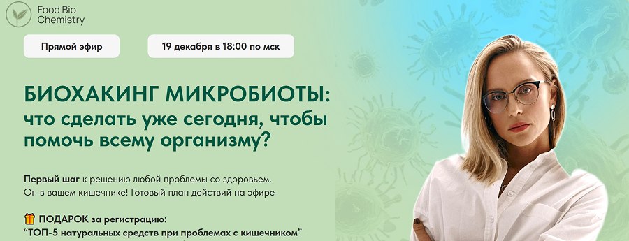19 декабря в 18:00 по мск я проведу большой бесплатный эфир “Биохакинг микробиоты: что сделать уже сегодня, чтобы помочь всему организму”