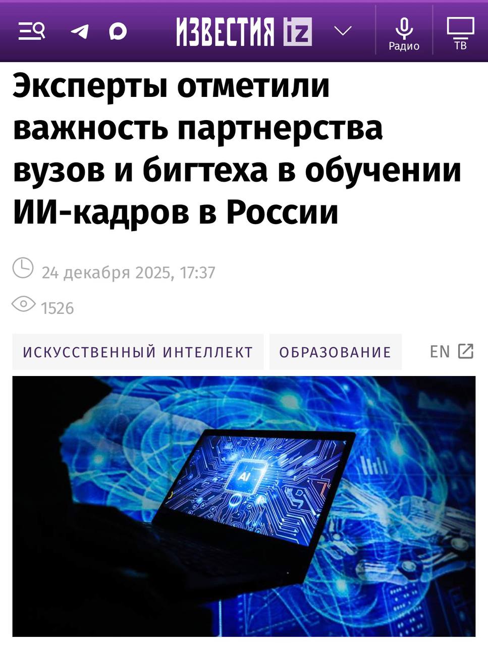 Россия делает ставку на бигтех, чтобы готовить ИИ-специалистов