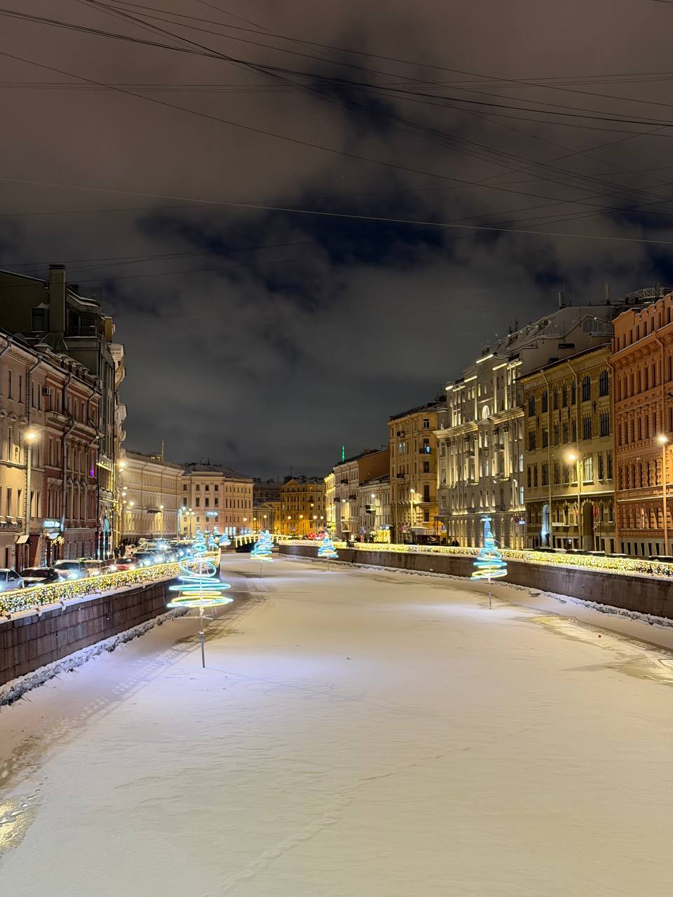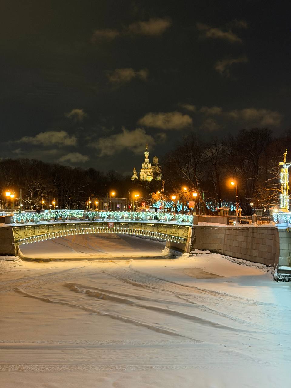 Вчера вечером мой внутренний ёлочный проныра не угомонился и, встретившись с давней знакомой на часок-другой, сходил на вечернюю Дворцовую, чтобы поглядеть красавицу новогоднюю под другим углом.