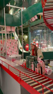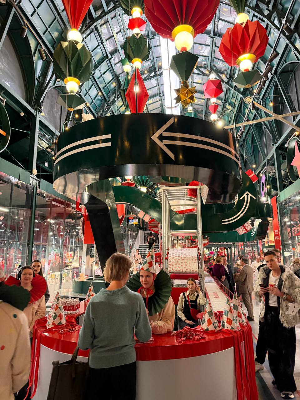 Внутри всё сделано как волшебная фабрика подарков. Красиво, дарят подарки, рядом каток, внутри много стильных аккуратных вещей от локальных брендов. Хорошее место просто погулять и выбрать подарок.