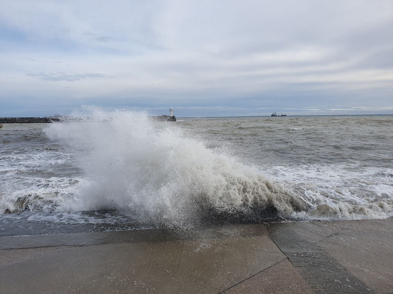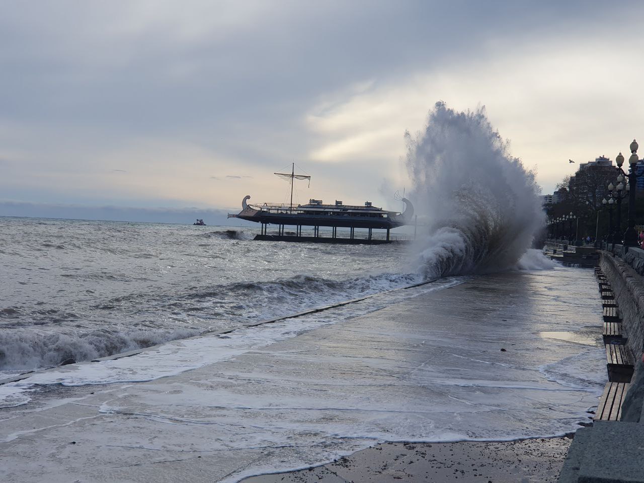 Ялту накрыло штормом, море сильно волнуется. Прошу всех, кто решил прогуляться на набережной, соблюдать осторожность 🌊