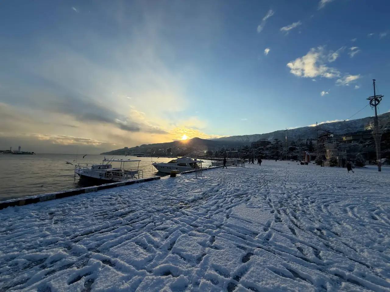 ❗В Большой Ялте продолжает действовать штормовое предупреждение, температура воздуха – минус 2, ветер северо-восточный 4-9 м/с, осадки незначительные.