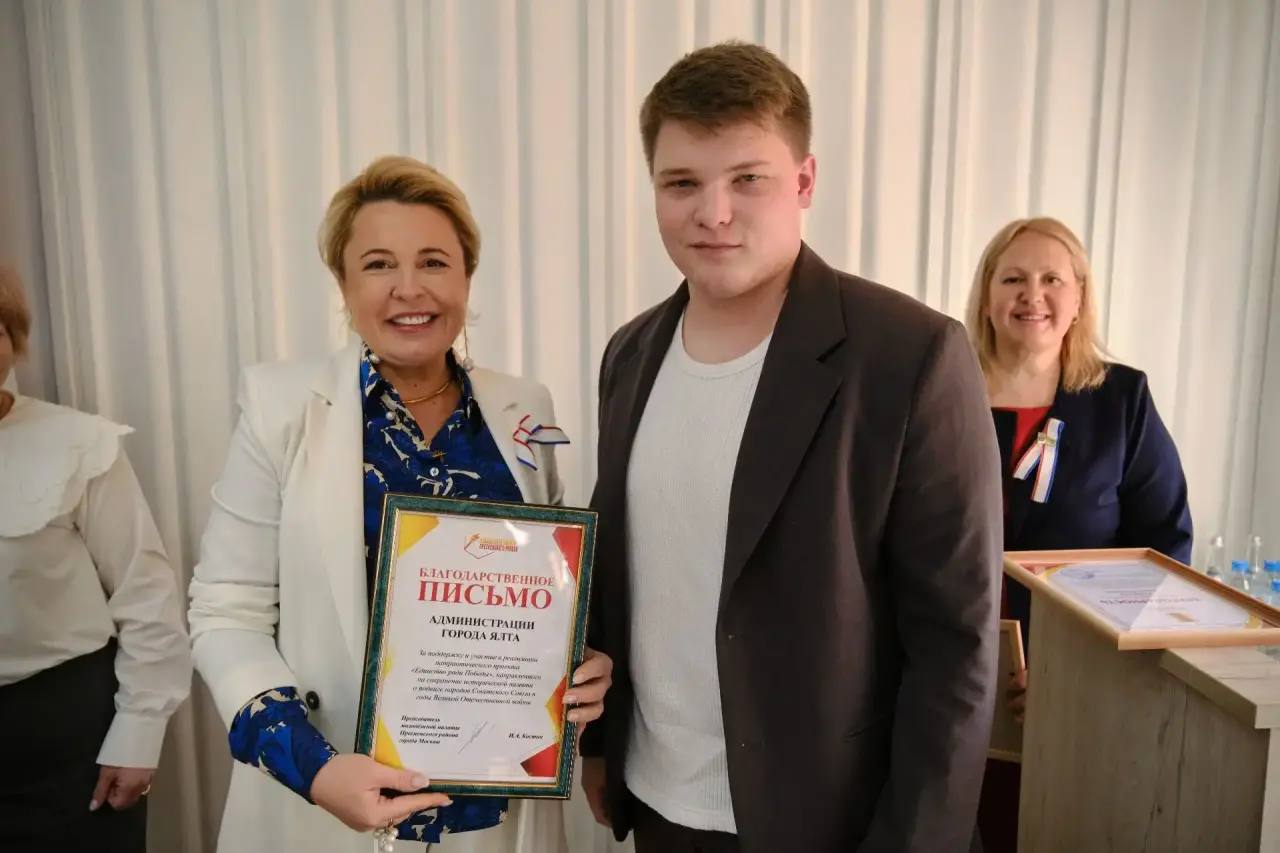 🏅 Сегодня же вручили медаль «За помощь фронту» членам Русской общины Вере Семёновой и Дмитрию Колесникову, а Благодарственное письмо – коллективу Ялтинской детской художественной школы им. Ф.А. Васильева за организацию выставки к нашей знаменательной дате!