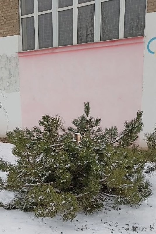 🔸Бегущий куст на видео — это человек, который спилил ёлку у школы в ЛНР, а потом выбросил её через дорогу