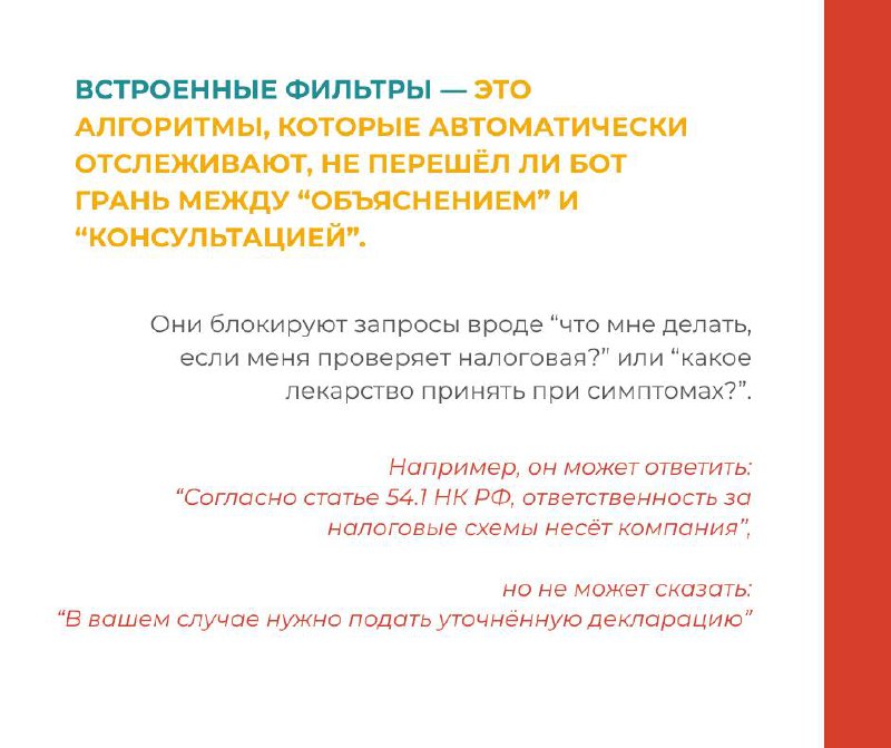 Теперь бот не расскажет, как оформить сделку, выбрать налоговый режим или защитить персональные данные.