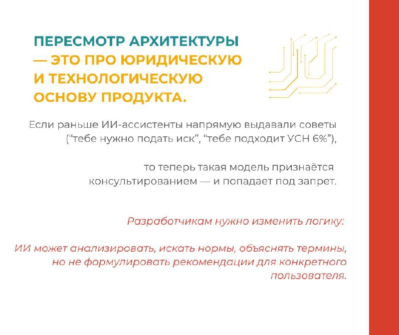 • Продукты на базе ChatGPT — юридические, медицинские, финансовые ассистенты — должны пересмотреть архитектуру и юридические основания работы.