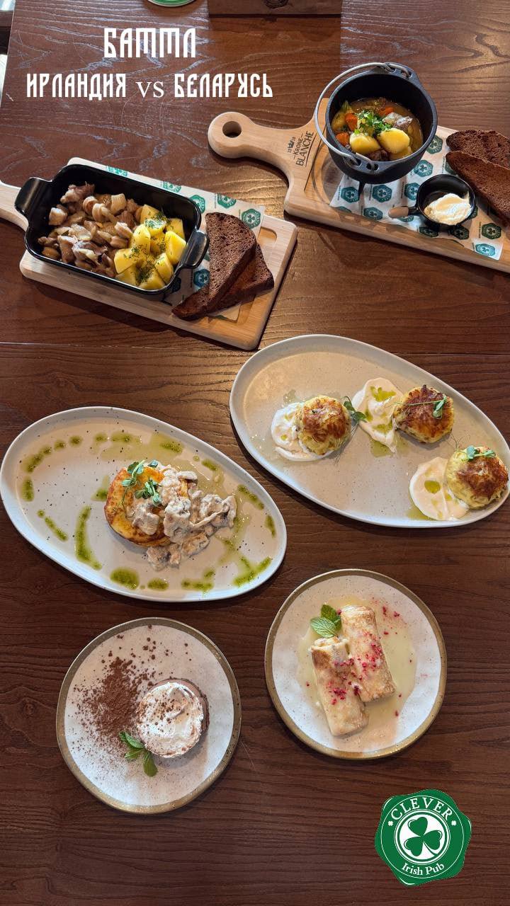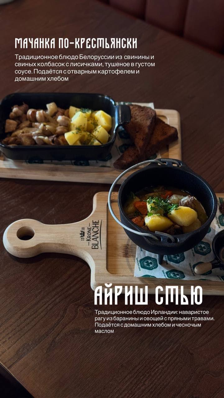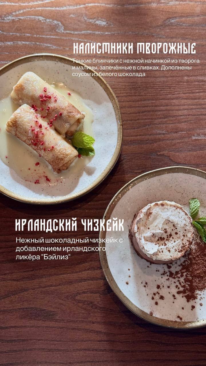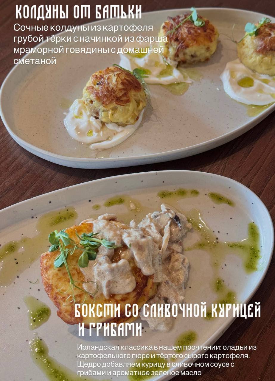 В меню как закуски, так и полноценные блюда. Из алкоголя: настойки, коктейли, пиво, вино, крепкий алкоголь.