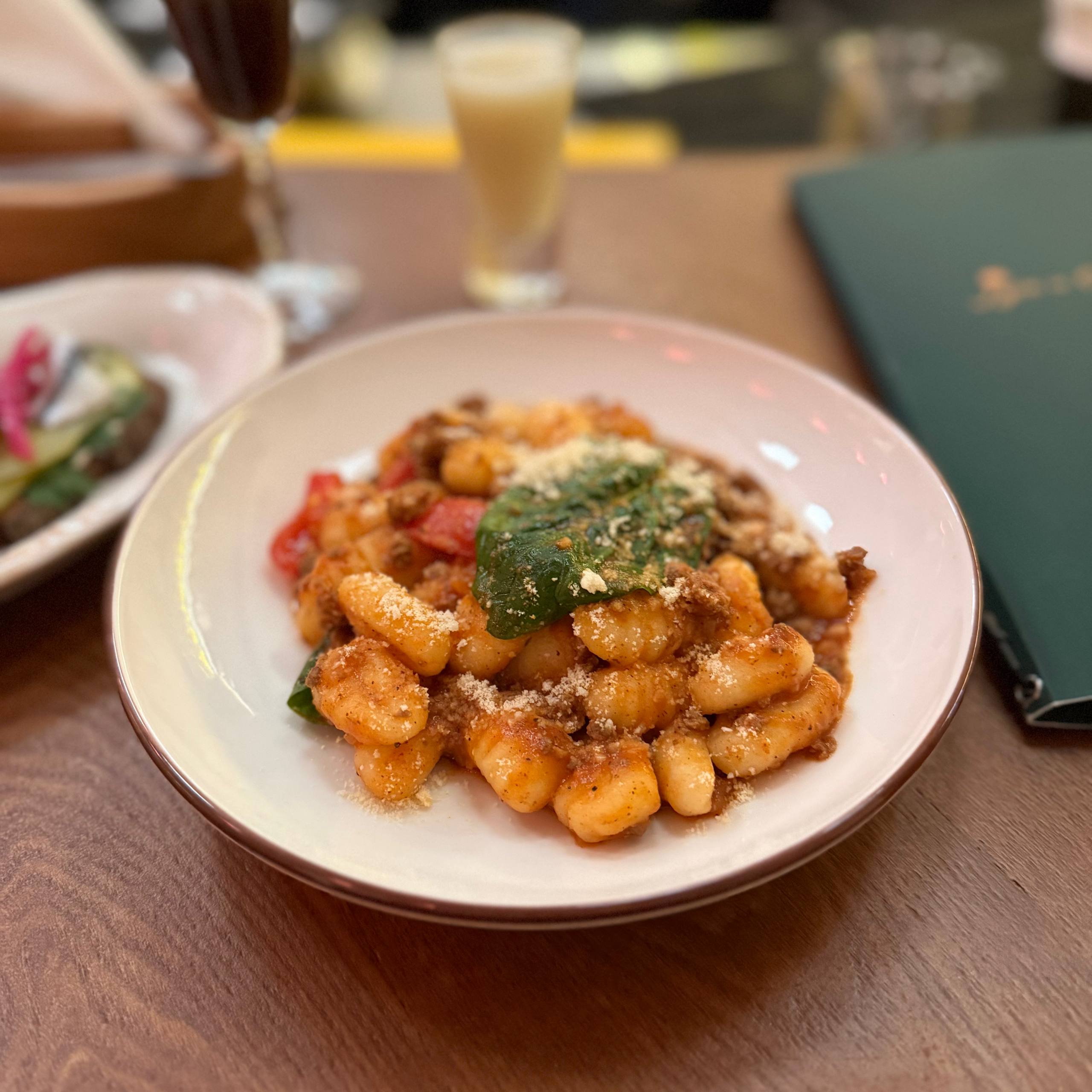 В составе: картофельные галушки, соус болоньезе, шпинат, пармезан.