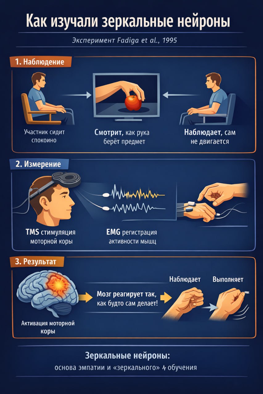 Когда мы четко считываем эмоции, жесты и действия других людей, в мозгу активируются те же зоны, что и при собственном переживании (2021 May, National Library of Medicine: The human mirror neuron system-A common neural basis for social cognition).