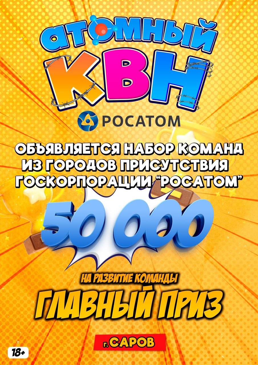 💛 Друзья, мы с большим удовольствием объявляем о том, что продолжается набор команд для участия в кубке - «Атомный КВН: Росатом 2026»!