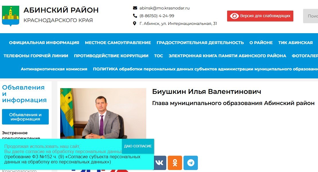 🔻Заместителя главы администрации Абинского района Краснодарского края оштрафовали на 100 тыс. рублей за ведение сайта муниципалитета на американской платформе WordPress.