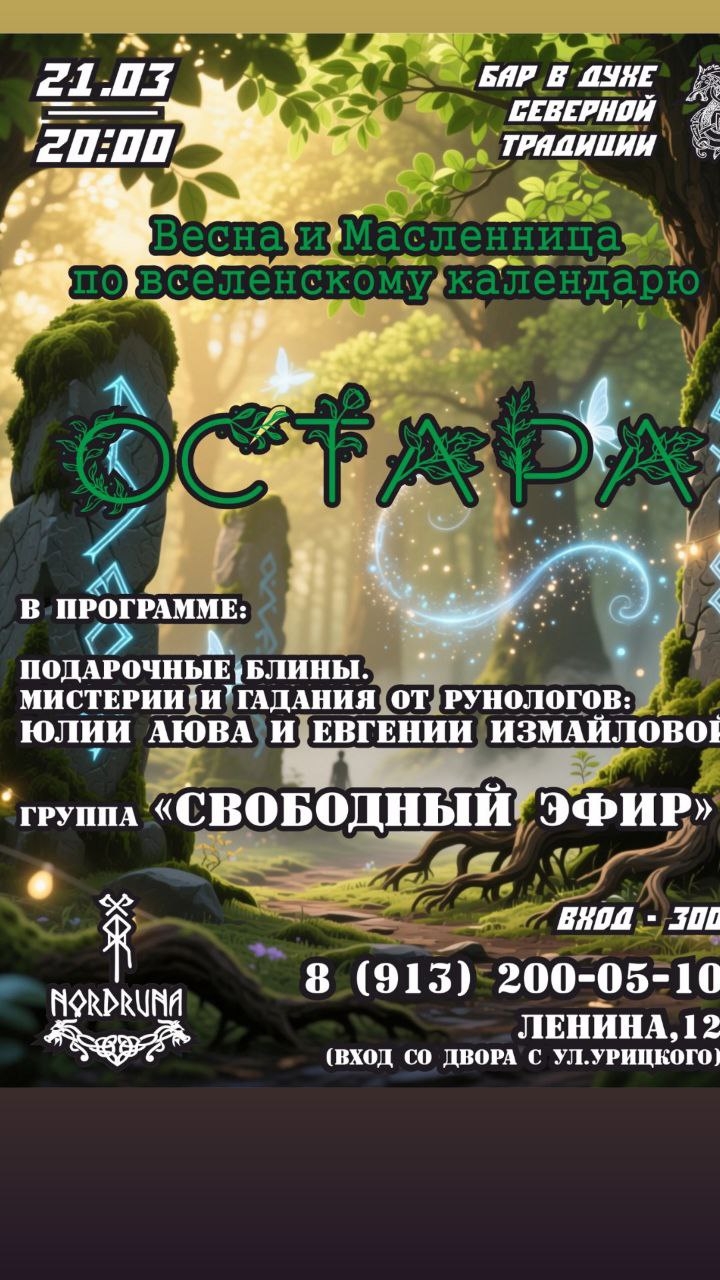 21 марта в 20.30 празднование Остары в баре северной традиции "Нордруна"