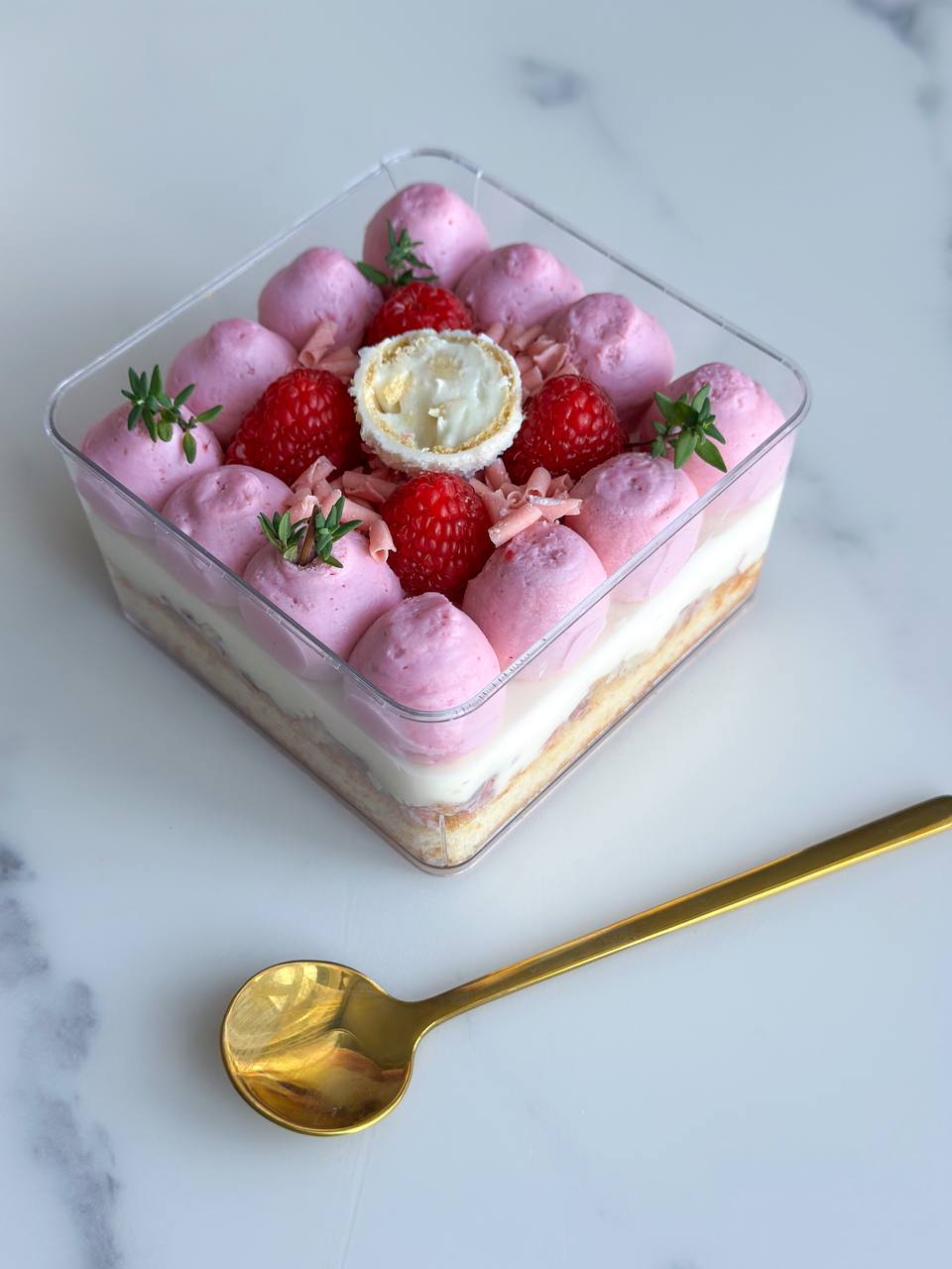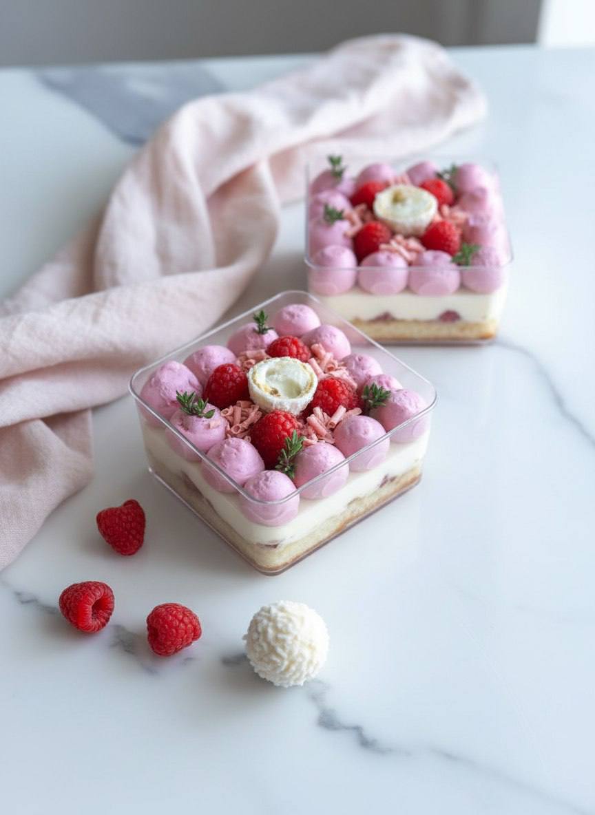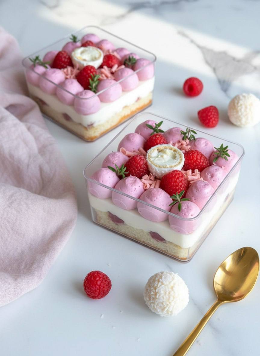 Это не просто десерт. Это путешествие: от нежности к хрусту, от кокосовой сливочности — к яркому малиновому аккорду. Идеальный баланс, который хочется растягивать с каждой ложкой.