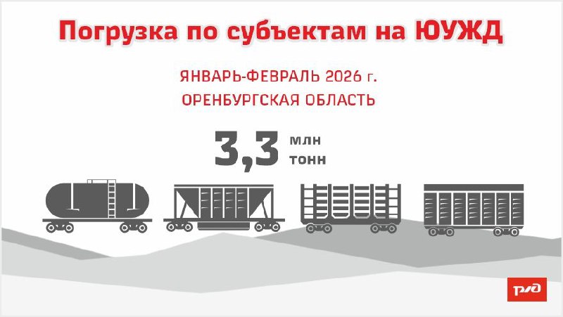 🚆🚆 Всего из Оренбургской области с начала года отправили 3,3 млн тонн различных грузов, из них в феврале – 1,6 млн тонн.
