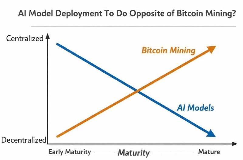 💬 Глава Galaxy Research отмечает, что Bitcoin и ИИ развиваются в противоположных направлениях: майнинг за последние годы превратился из домашнего хобби в масштабную индустрию с ASIC-оборудованием и крупными дата-центрами.