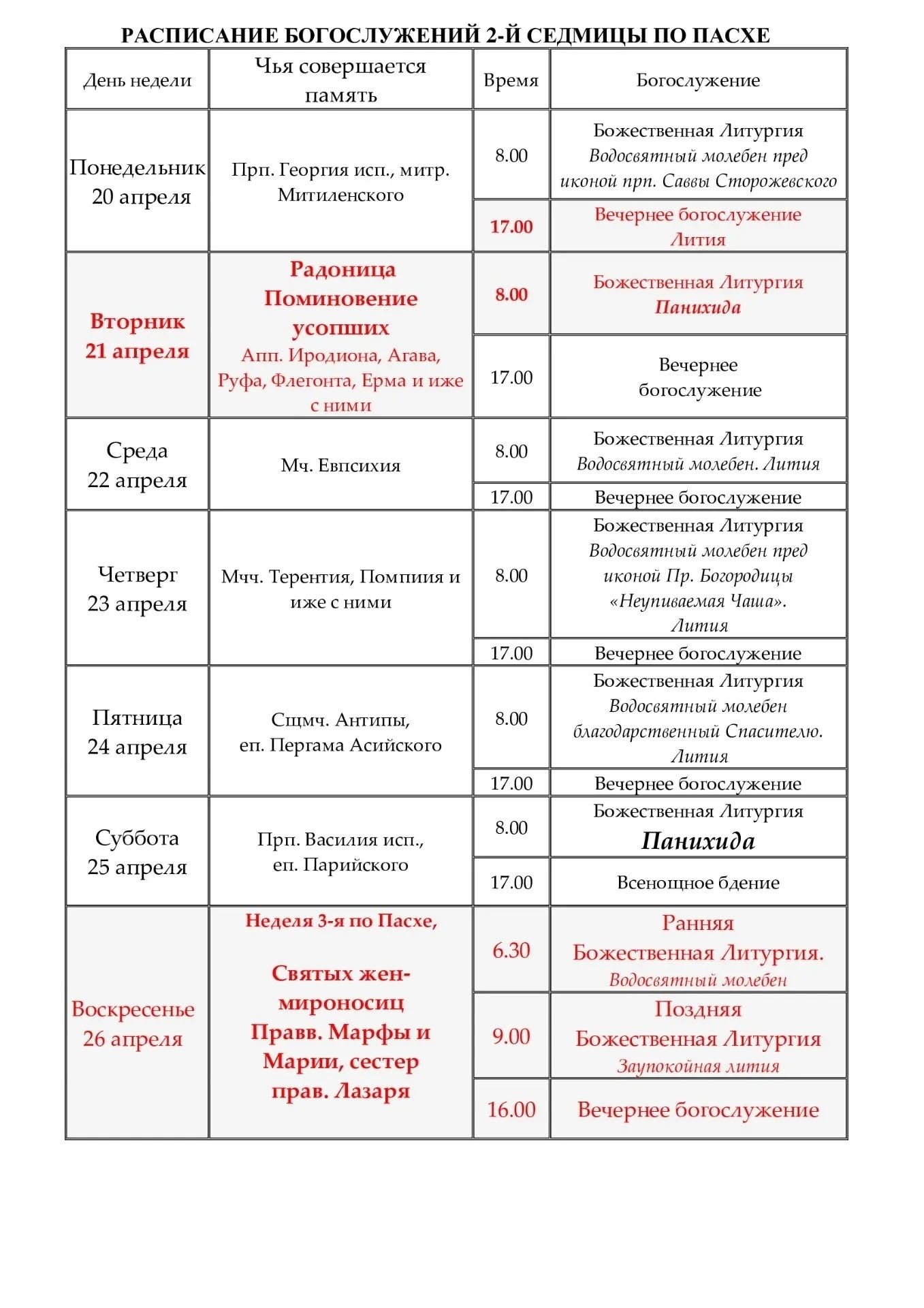 - пн; вт; пт; сб; вс. - выходные дни.