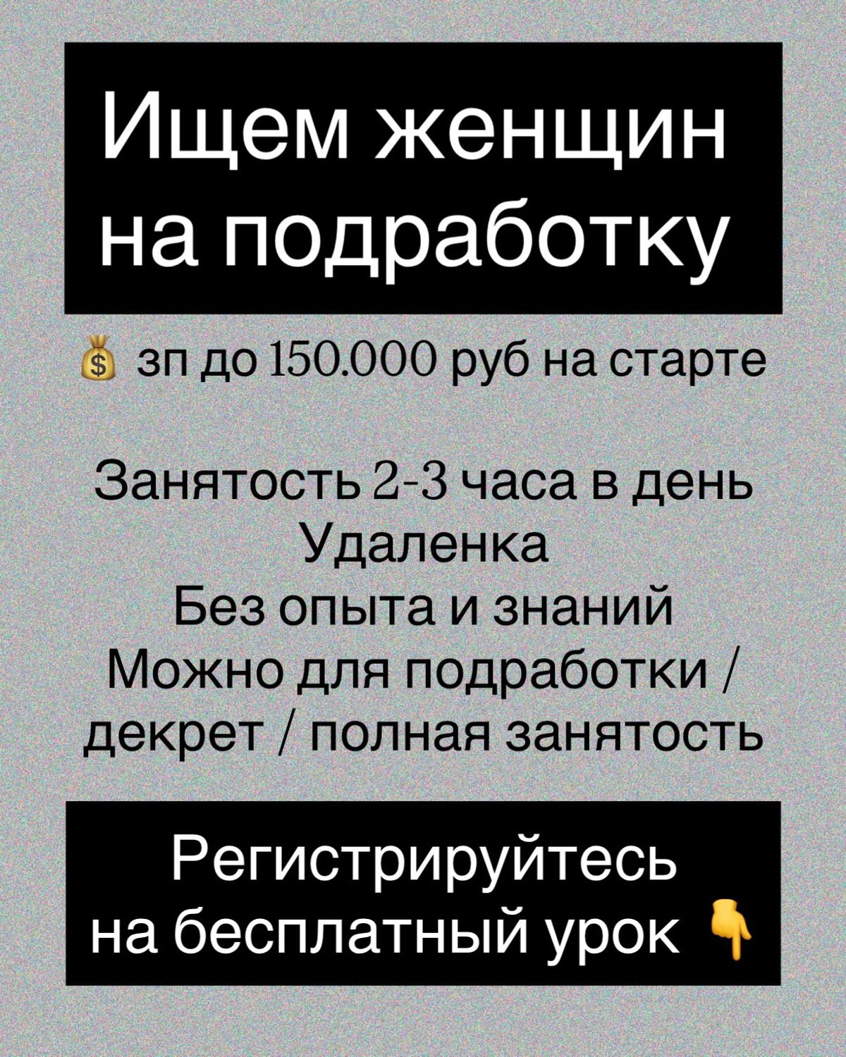 Ищем женщин на подработку. Оплата 150 000₽ в месяц.