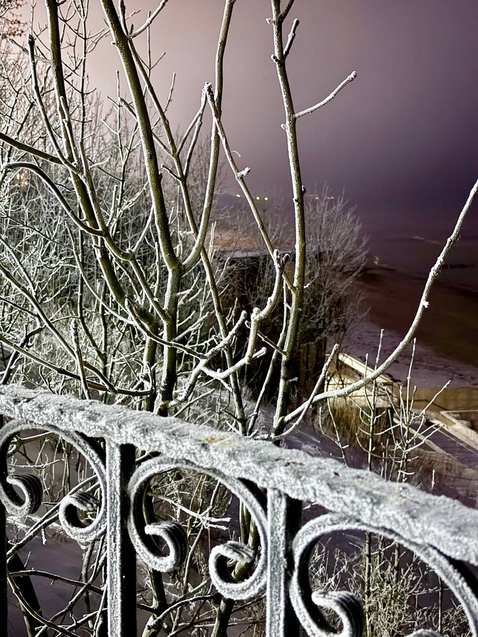 Зимние морозы и воды Балтийского моря у берегов Зеленоградска совместными усилиями создали впечатляющую картину — на пирсе выросли гигантские ледяные сосульки.