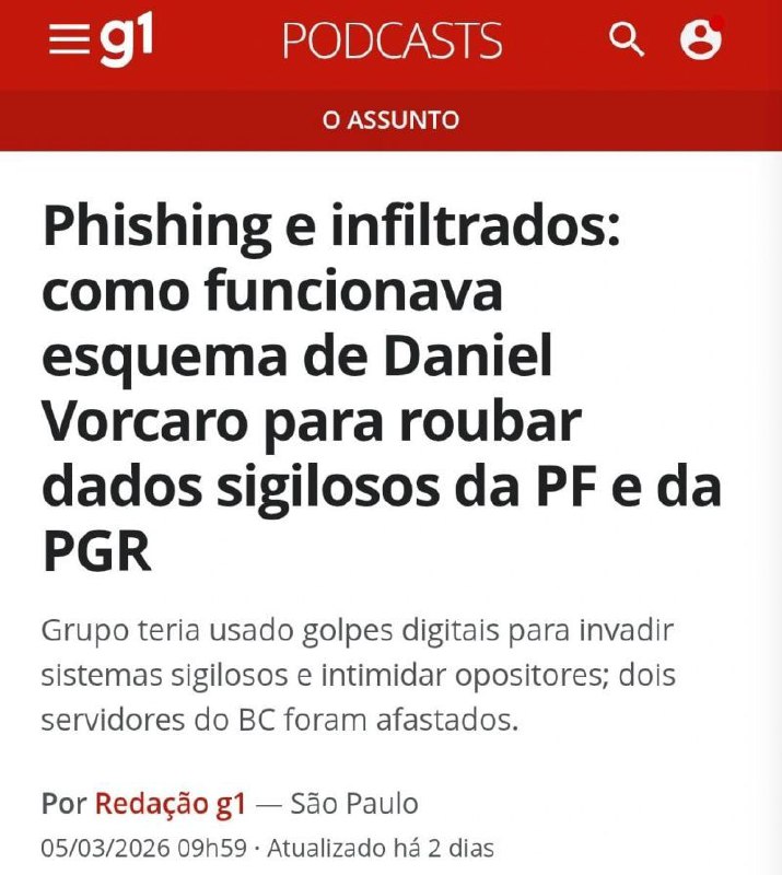 Phishing Insider comprometido. Credenciais roubadas. Acesso quase em tempo real a investigações sigilosas da PF, do MPF e até da Interpol.