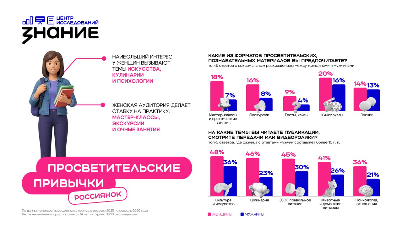 3️⃣ В преддверии 8 Марта Российское общество «Знание» организовало цикл тематических просветительских мероприятий по всей стране. В центре обсуждения — героини прошлого и нынешнего в России.