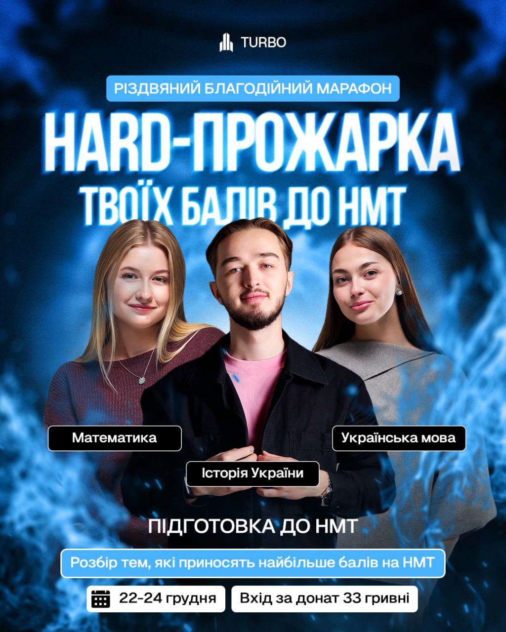 Різдвяний благодійний марафон від TURBO ZNO — це 3 дні підготовки з основних предметів, де можна отримати до 15 балів прогресу.