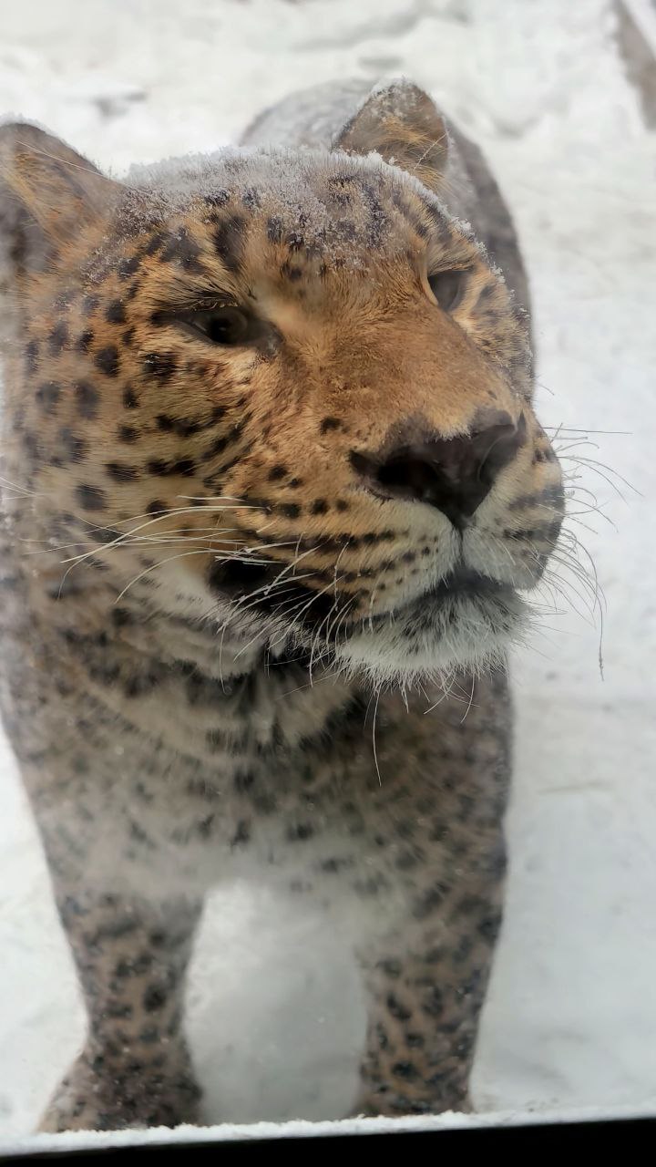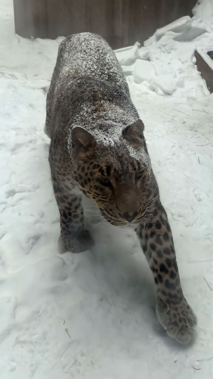 Весь день идёт снег. Хоть и мелкий, но непрерывно. Маушка из #Зоопак_Фортуна решил не сидеть в укрытии. Гуляет сколько хочет и такая погода его совсем не расстраивает.