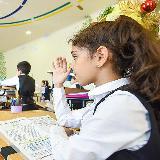 🖊 Классный руководитель 4-го «А» Казачкина Наталья Васильевна продемонстрировала представителям Общественной палаты работу учеников с зрительно-вестибулярным тренажёром «Специальные универсальные символы» и тренажёром «Бегущие огоньки».