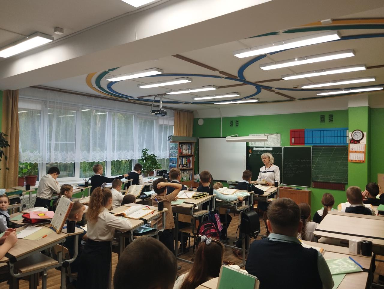 📌 На данный момент в классе используется несколько элементов системы Базарного: тренажер «Бегущие огоньки», спортивный комплекс «Шведская стенка» и ростовые тумбы на учебные столы.